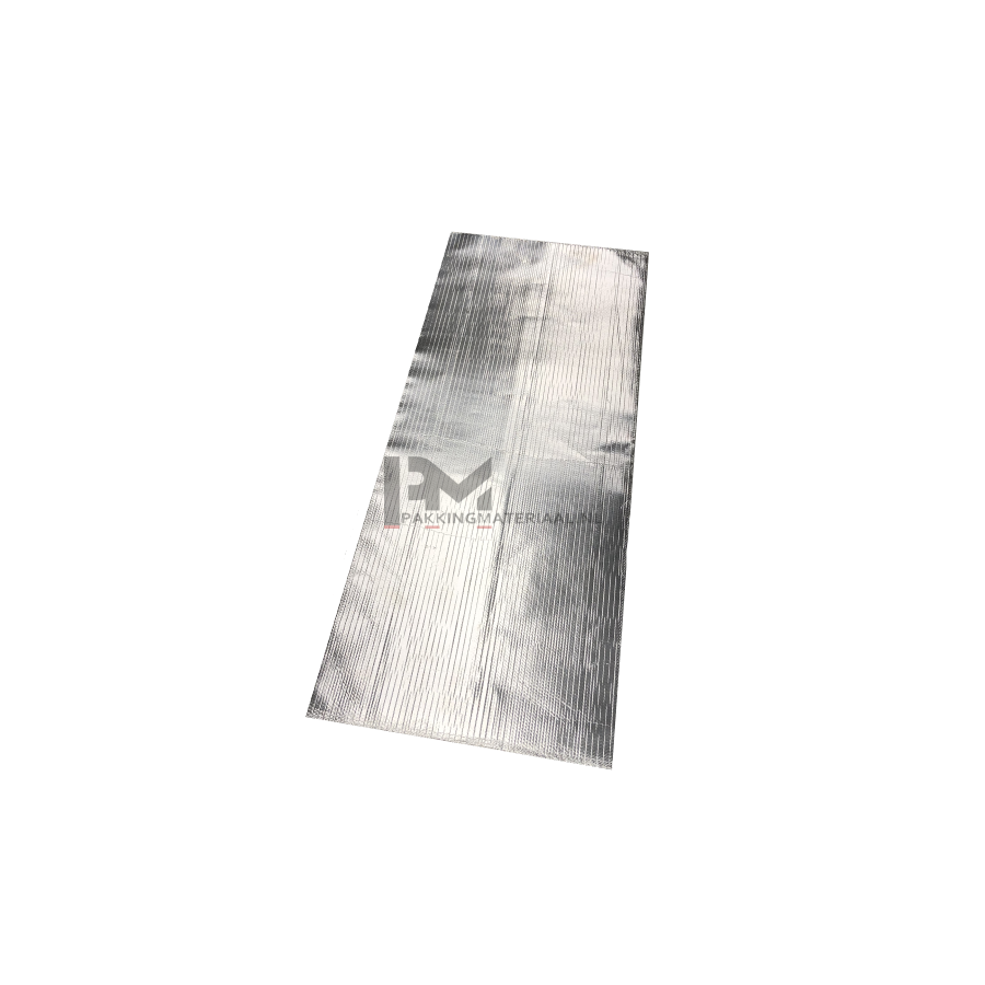 Hitzeschild aus Glasfasern vom Typ 'E' (9-µm-Fasern) mit einem Aluminiumblech auf der einen Seite und einer Klebstoffseite mit hoher Klebrigkeit und Wärmebeständigkeit auf der anderen Seite (HT bezieht sich auf die Qualität des Klebstoffs)